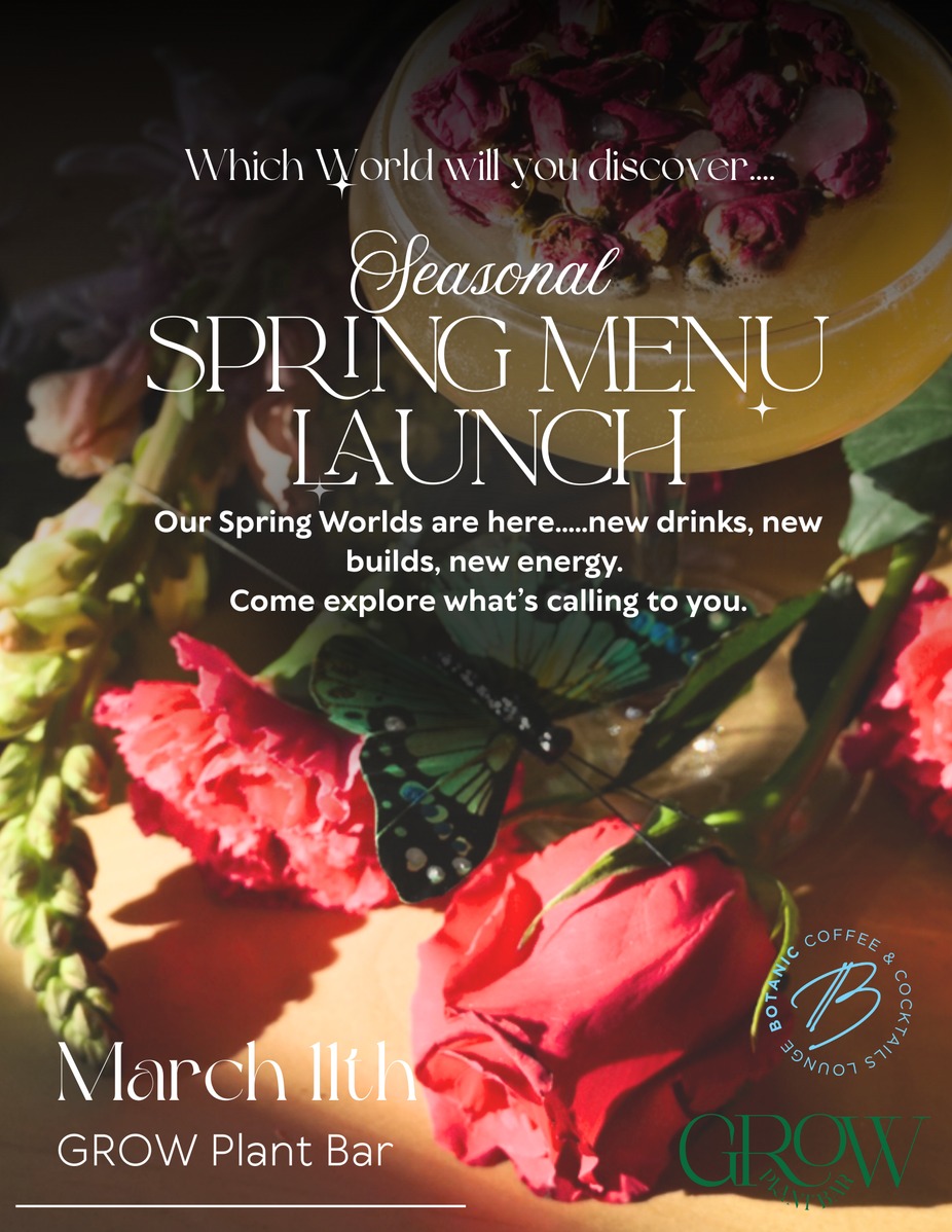Spring has unfolded at GROW and our new menu is more than drinks — it’s worlds waiting to be explored.